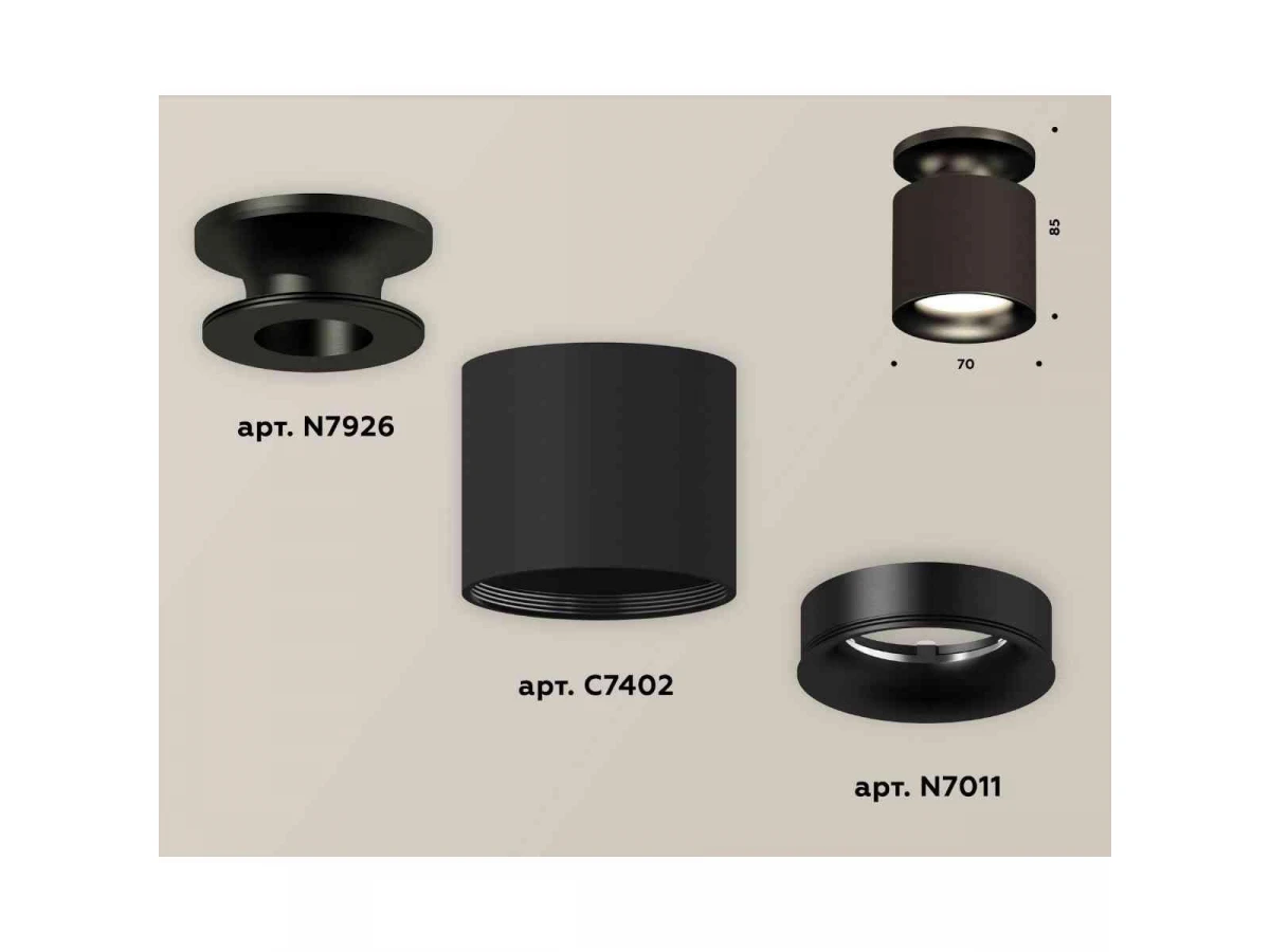 Комплект накладного светильника Ambrella light Techno Spot XS7402061 SBK/PBK черный песок/черный полированный (N7926, C7402, N7011)