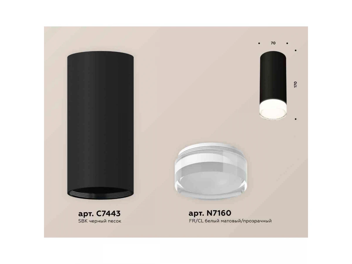 Комплект накладного светильника Ambrella light Techno Spot XS7443014 SBK/FR/CL черный песок/белый матовый/прозрачный (C7443, N7160)