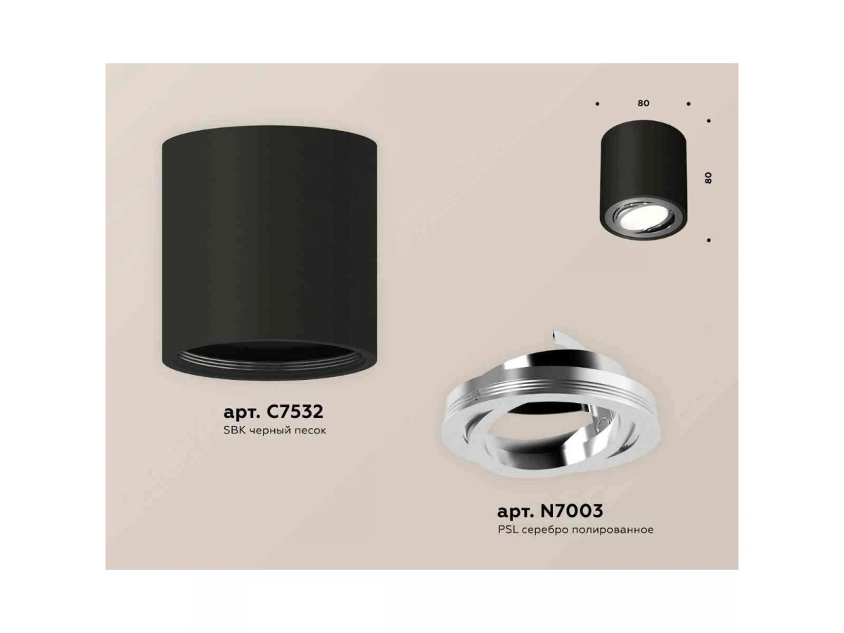 Комплект накладного светильника Ambrella light Techno Spot XS7532003 SBK/PSL черный песок/серебро полированное (C7532, N7003)