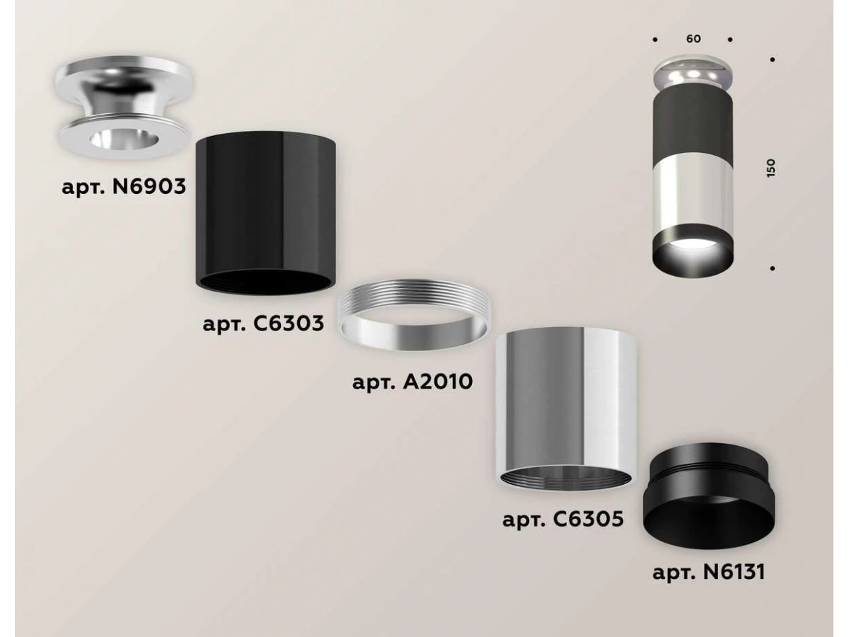 Комплект потолочного светильника Ambrella light Techno Spot XC (N6903, C6303, A2010, C6305, N6131) XS6305100
