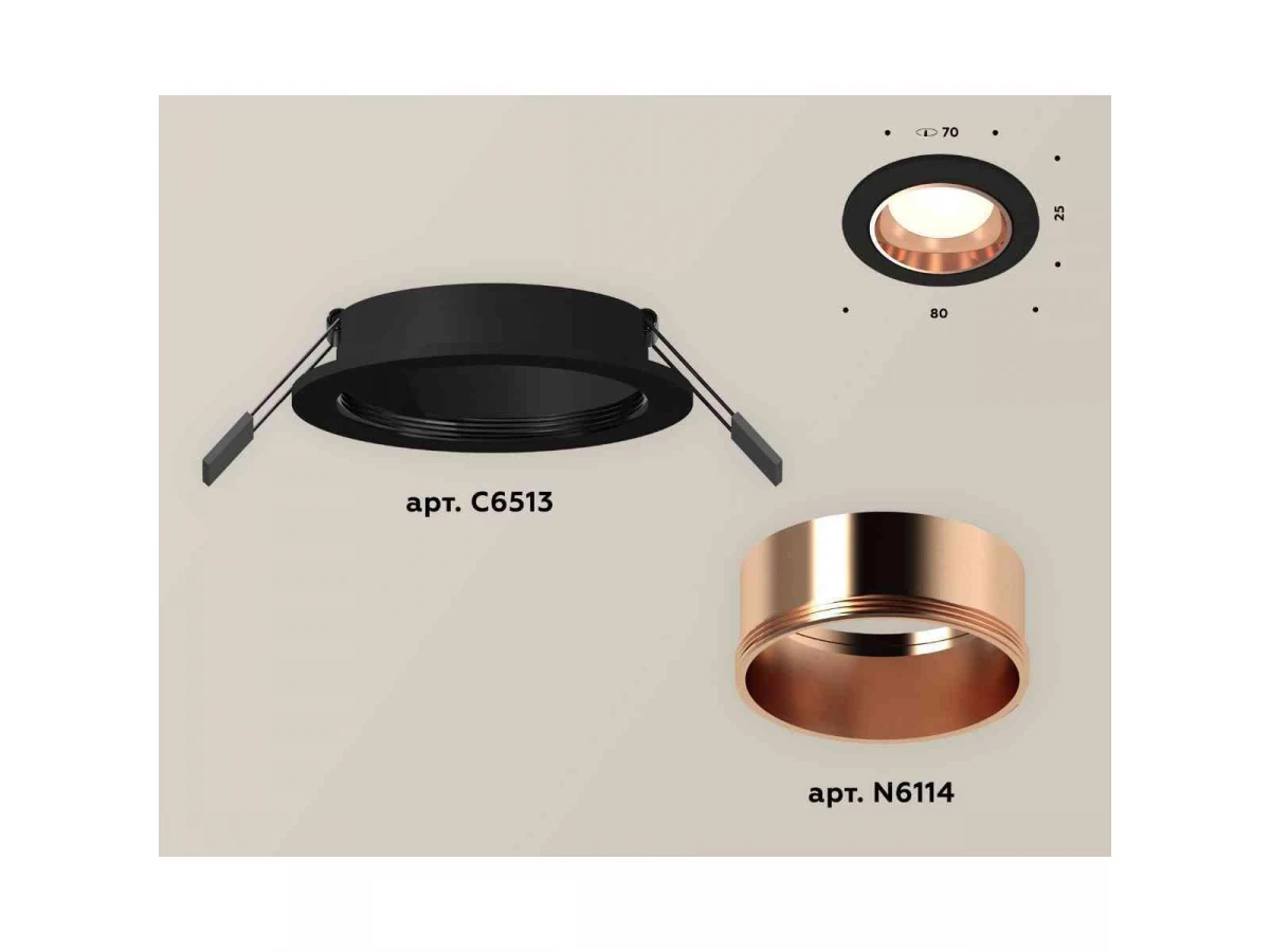 Комплект встраиваемого светильника Ambrella light Techno Spot XC6513005 SBK/PPG черный песок/золото розовое полированное (C6513, N6114)