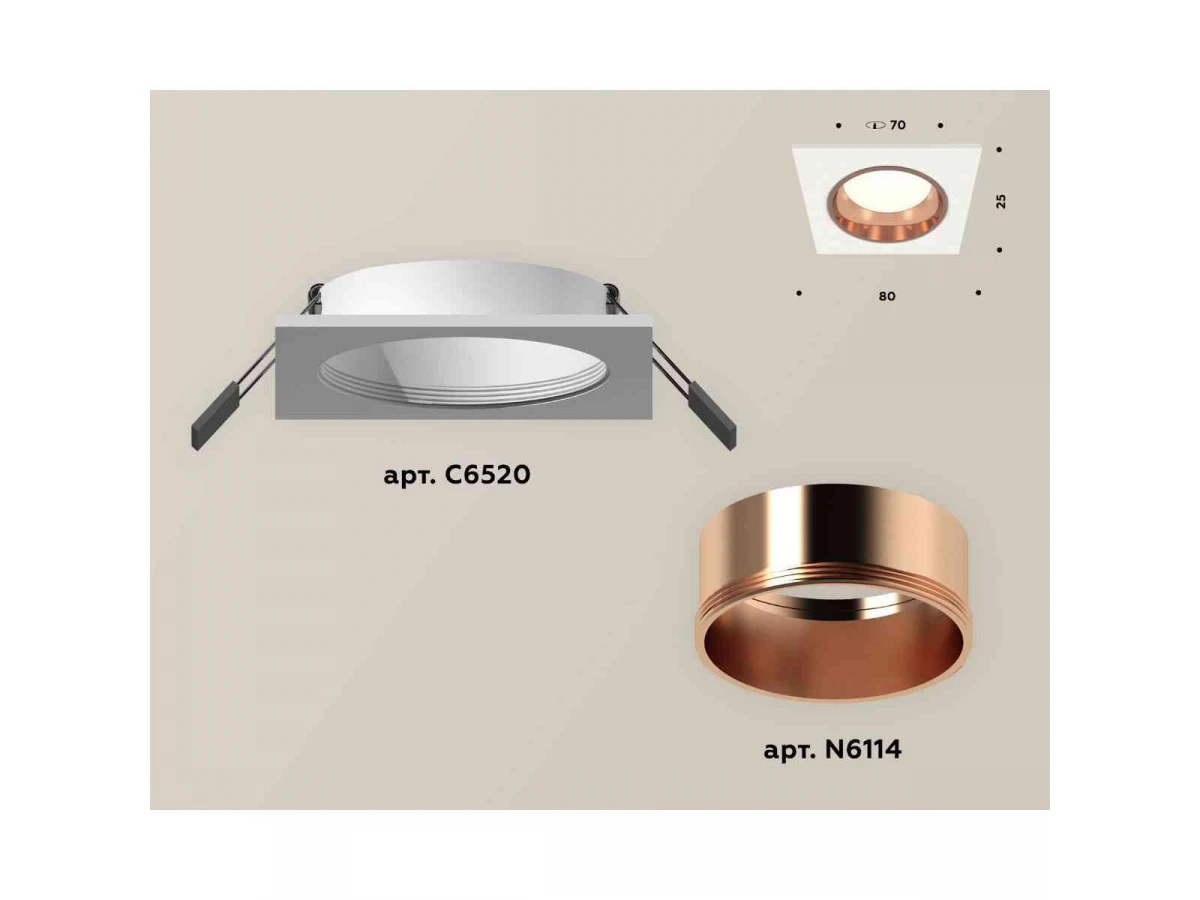 Комплект встраиваемого светильника Ambrella light Techno Spot XC6520005 SWH/PPG белый песок/золото розовое полированное (C6520, N6114)