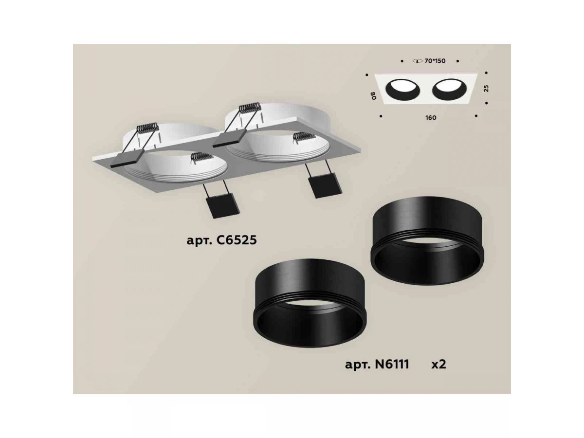 Комплект встраиваемого светильника Ambrella light Techno Spot XC6525002 SWH/SBK белый песок/черный песок (C6525, N6111)