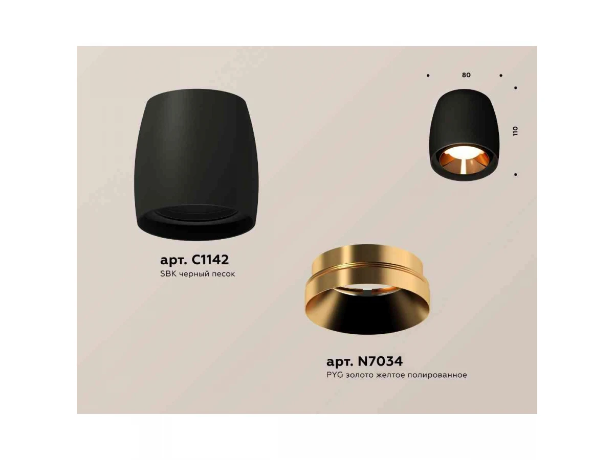 Комплект накладного светильника Ambrella light Techno Spot XS1142004 SBK/PYG черный песок/золото желтое полированное (C1142, N7034)
