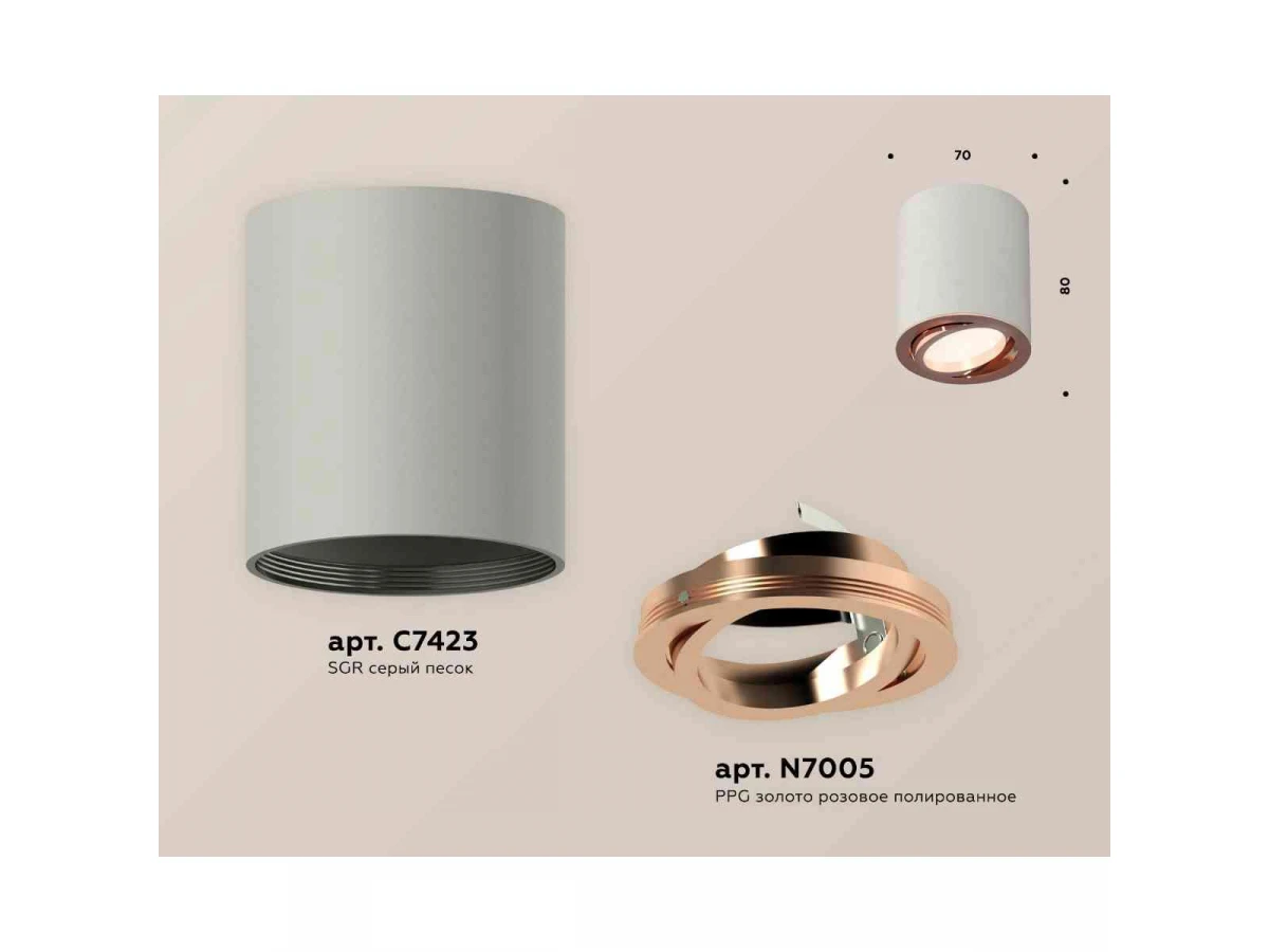 Комплект накладного светильника Ambrella light Techno Spot XS7423023 SGR/PPG серый песок/золото розовое полированное (C7423, N7005)