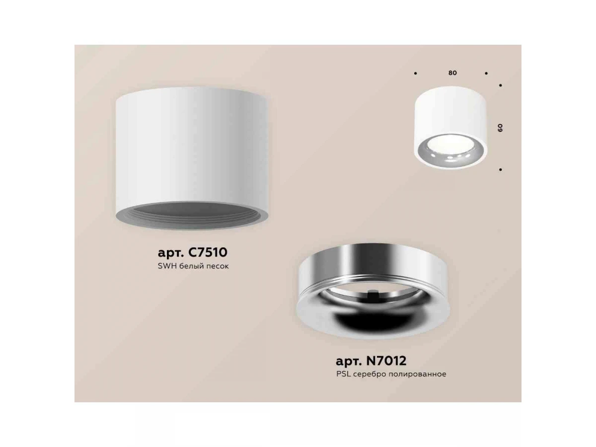 Комплект накладного светильника Ambrella light Techno Spot XS7510022 SWH/PSL белый песок/серебро полированное (C7510, N7012)