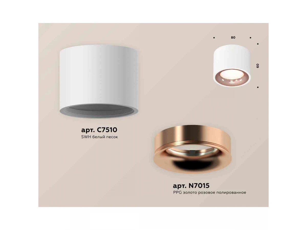 Комплект накладного светильника Ambrella light Techno Spot XS7510025 SWH/PPG белый песок/золото розовое полированное (C7510, N7015)