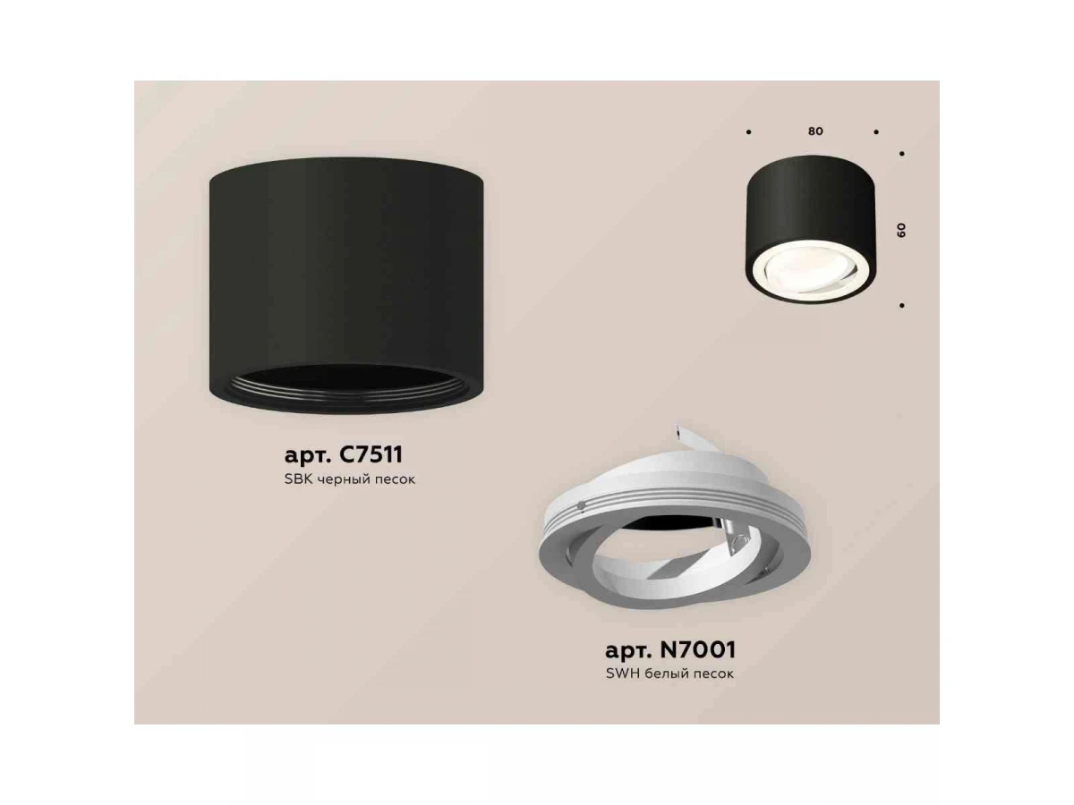 Комплект накладного светильника Ambrella light Techno Spot XS7511001 SBK/SWH черный песок/белый песок (C7511, N7001)
