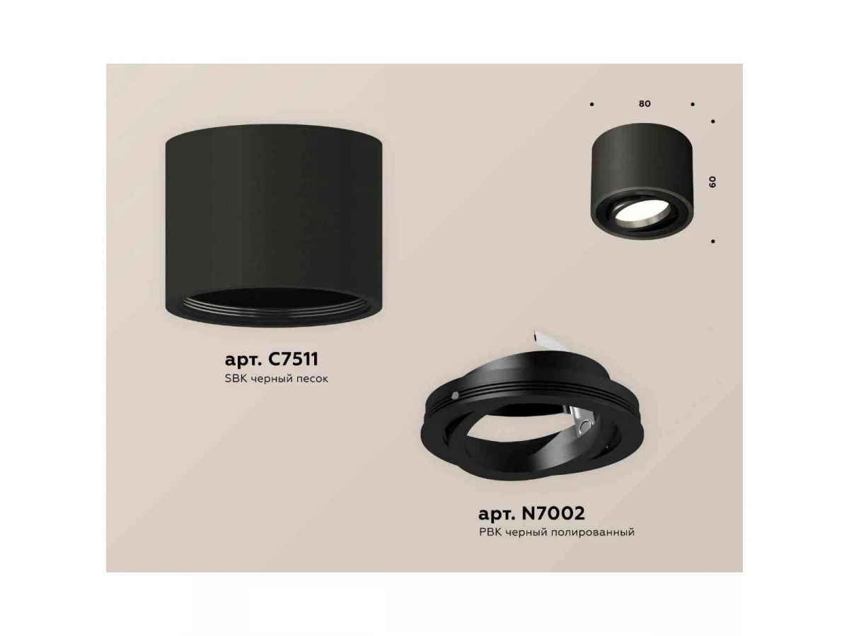 Комплект накладного светильника Ambrella light Techno Spot XS7511002 SBK/PBK черный песок/черный полированный (C7511, N7002)