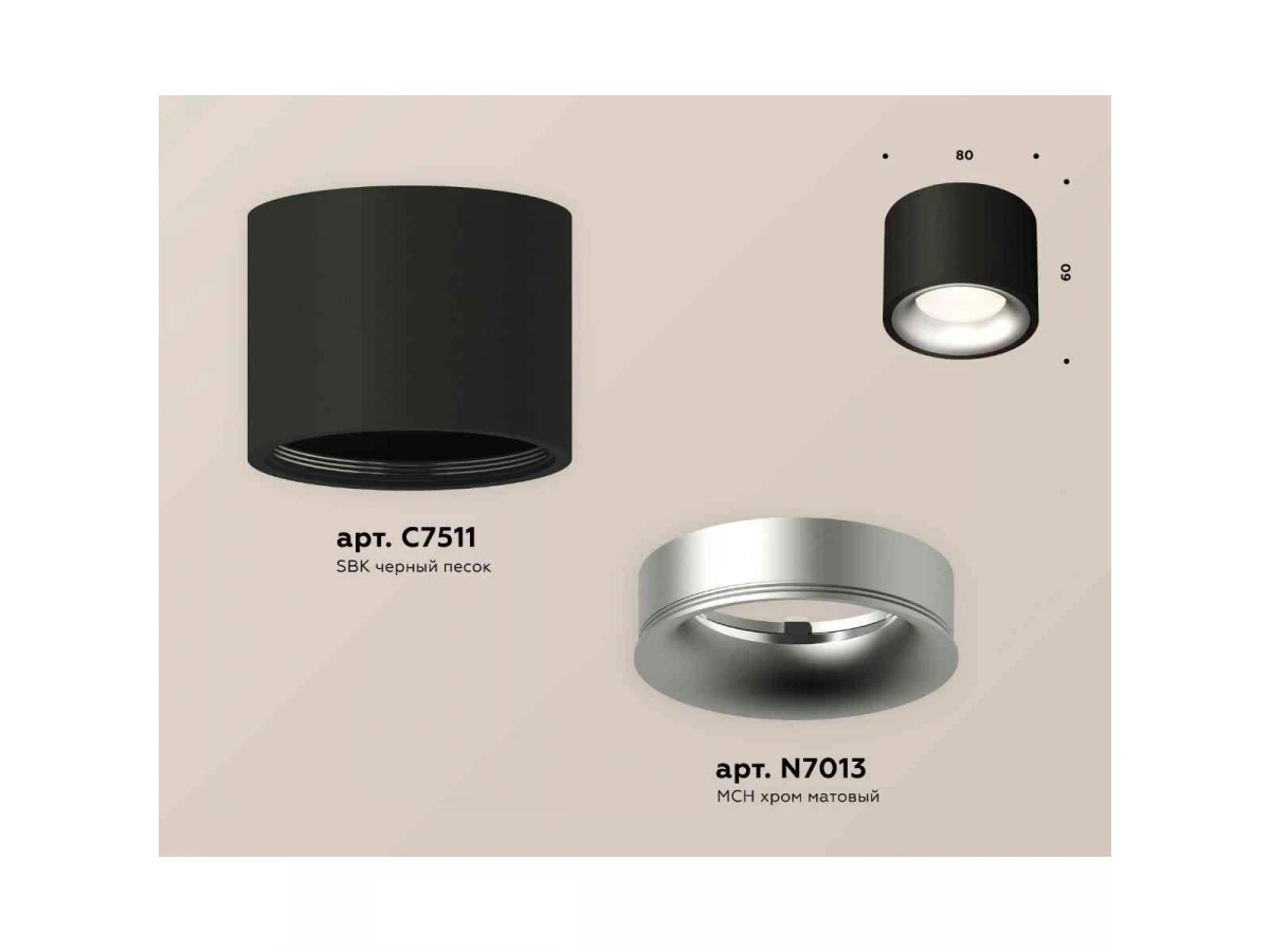 Комплект накладного светильника Ambrella light Techno Spot XS7511023 SBK/MCH черный песок/хром матовый (C7511, N7013)
