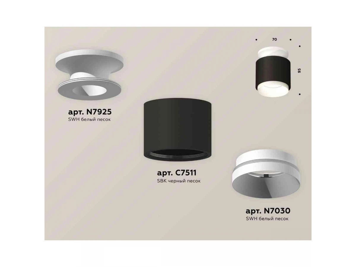 Комплект накладного светильника Ambrella light Techno Spot XS7511040 SBK/SWH черный песок/белый песок (N7925, C7511, N7030)
