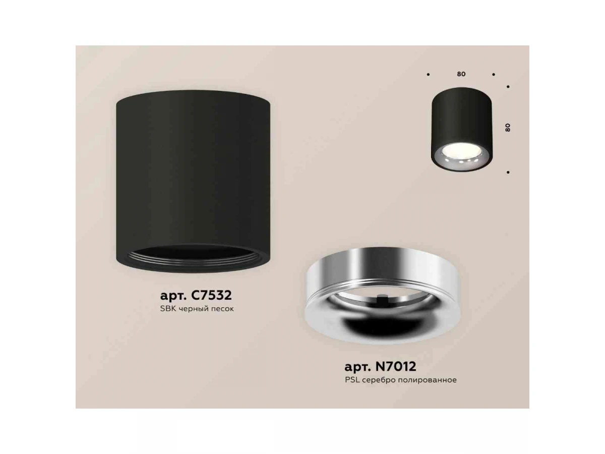 Комплект накладного светильника Ambrella light Techno Spot XS7532022 SBK/PSL черный песок/серебро полированное (C7532, N7012)