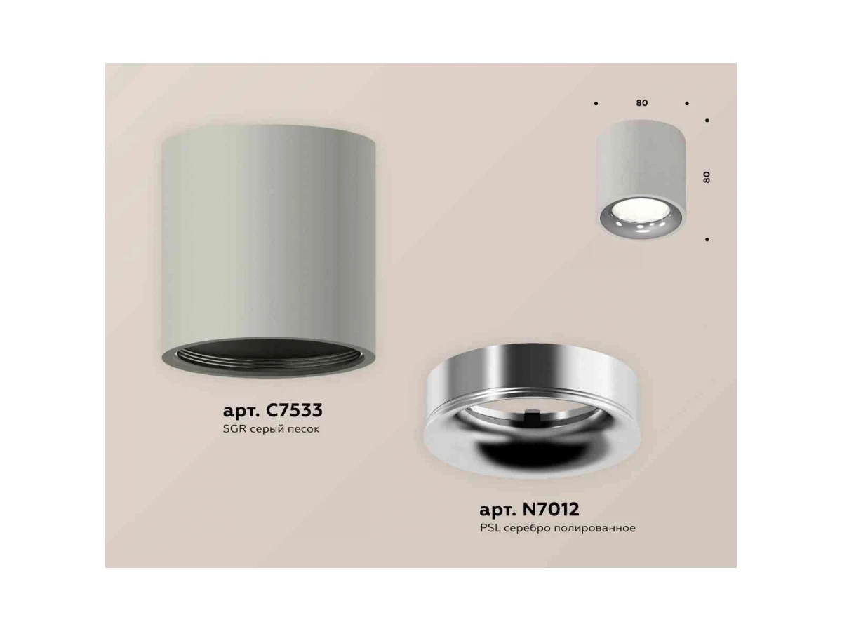 Комплект накладного светильника Ambrella light Techno Spot XS7533022 SGR/PSL серый песок/серебро полированное (C7533, N7012)