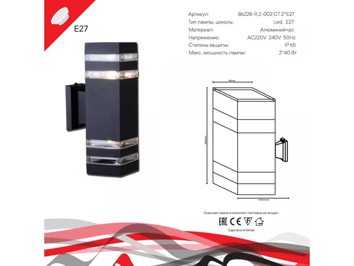 86228-9.2-002CT 2*E27 BK