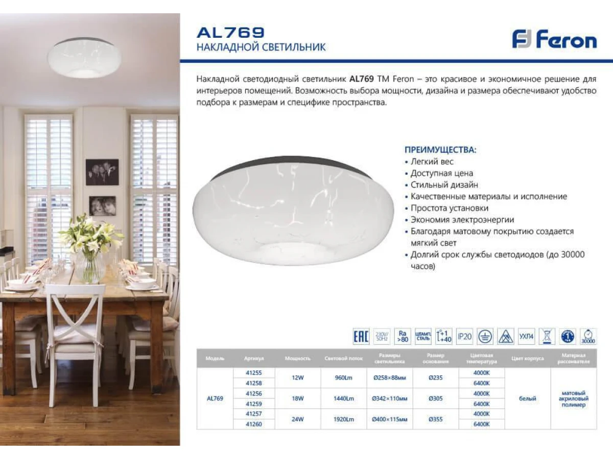 Потолочный светодиодный светильник Feron AL769 41257