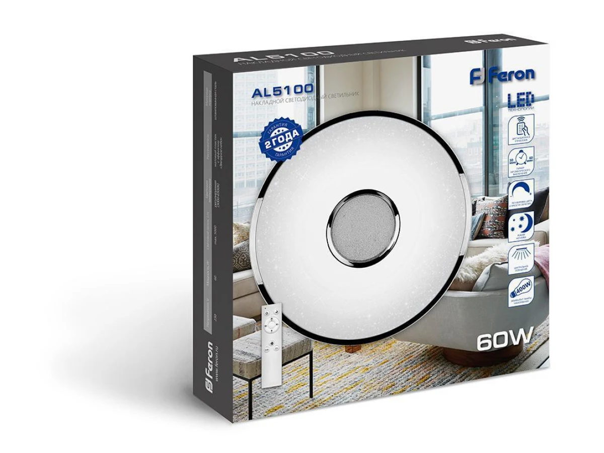 Светодиодный управляемый светильник накладной Feron AL5100 тарелка 60W 3000К-6500K белый