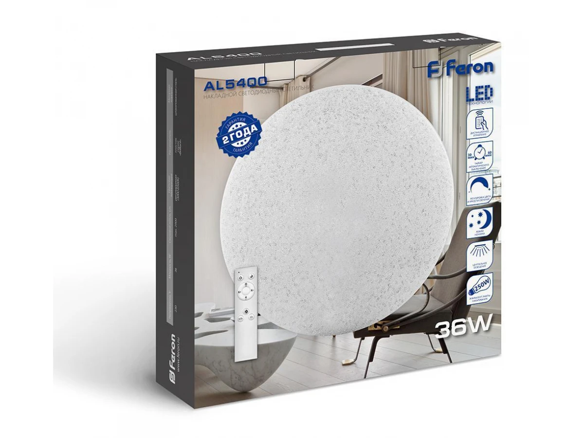 Светодиодный управляемый светильник накладной Feron AL5400 тарелка 36W 3000К-6500K белый