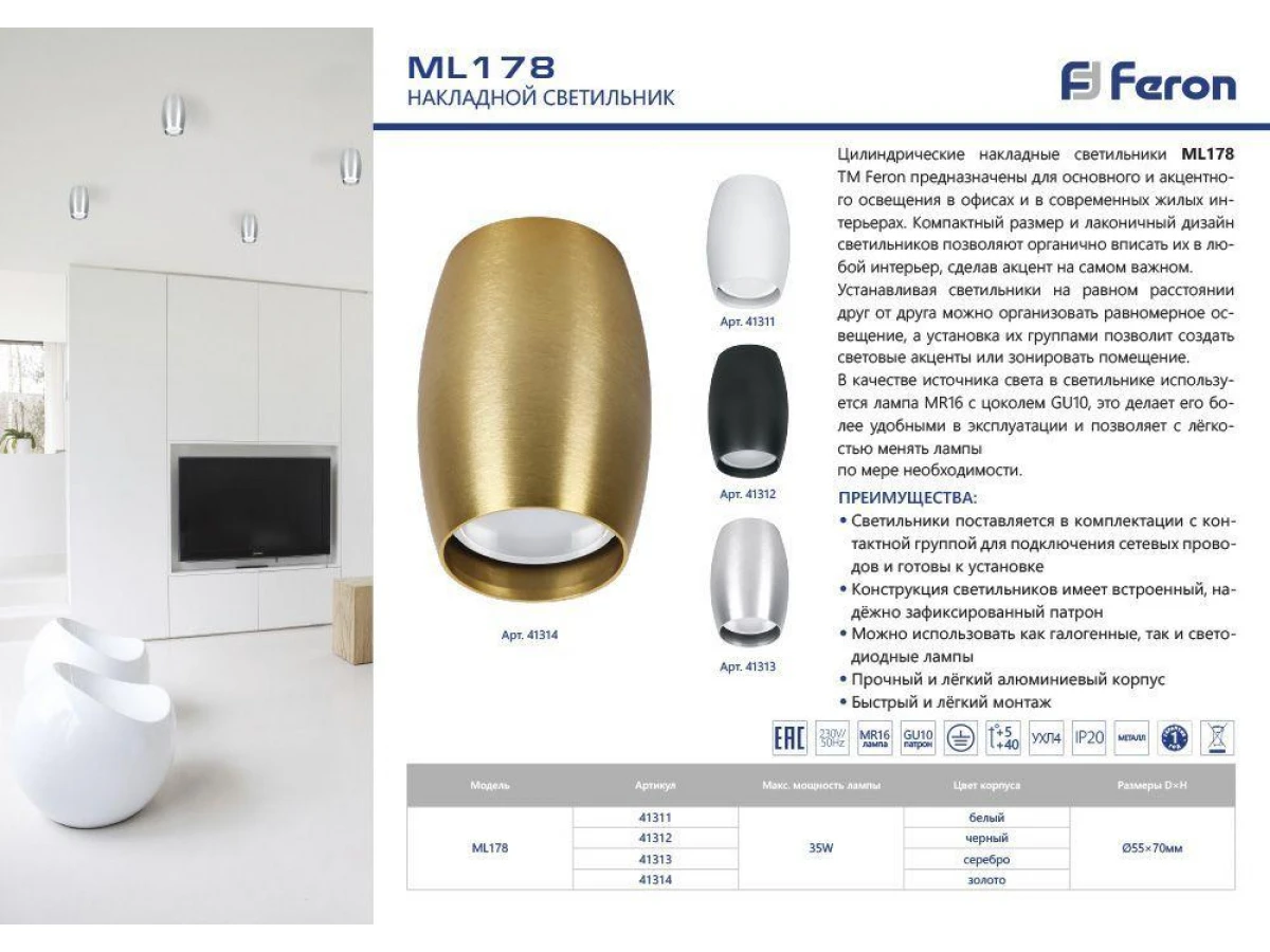Потолочный светильник Feron ML178 41311