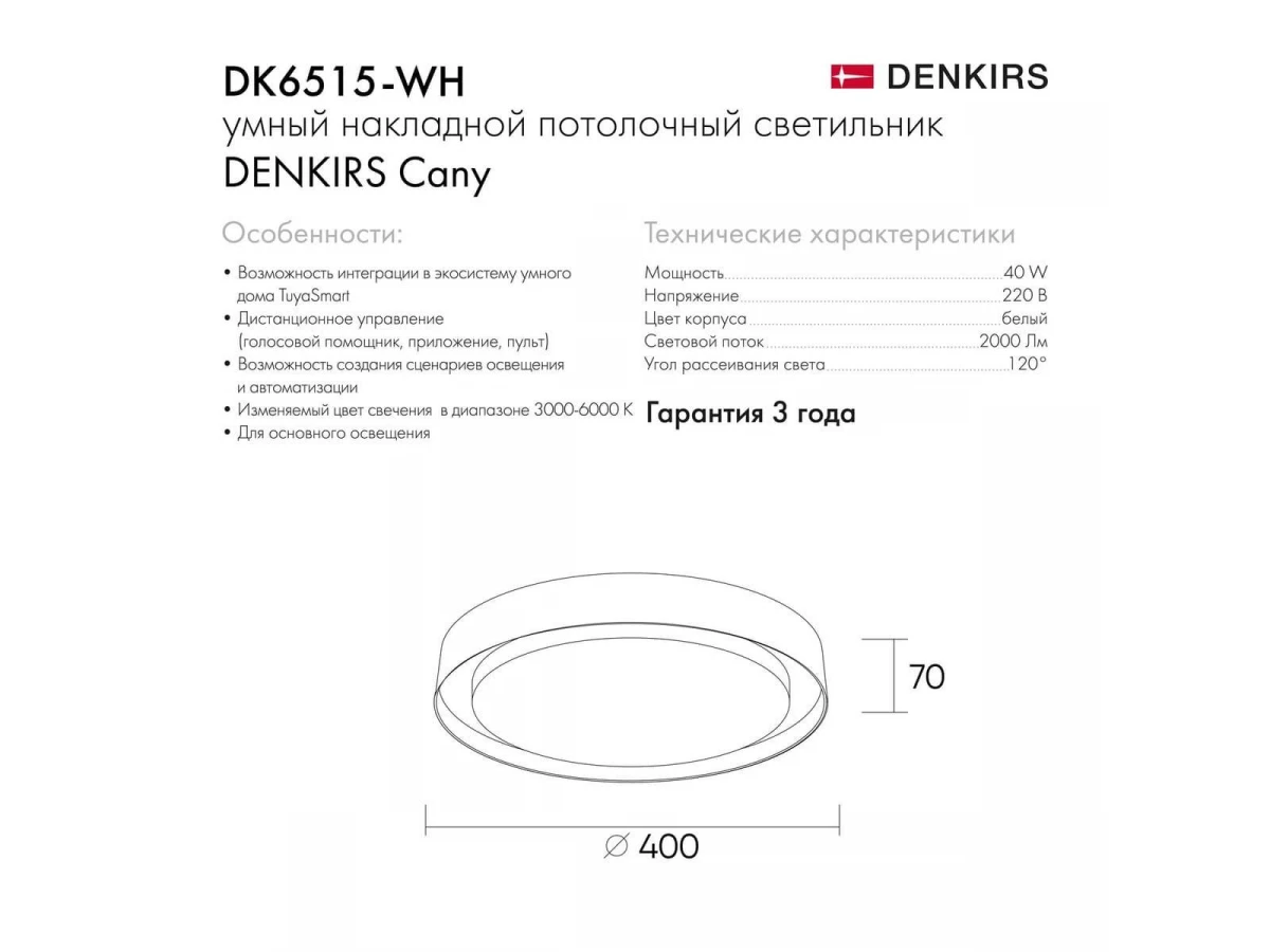 Потолочный светодиодный светильник Denkirs DK6516-WH/1