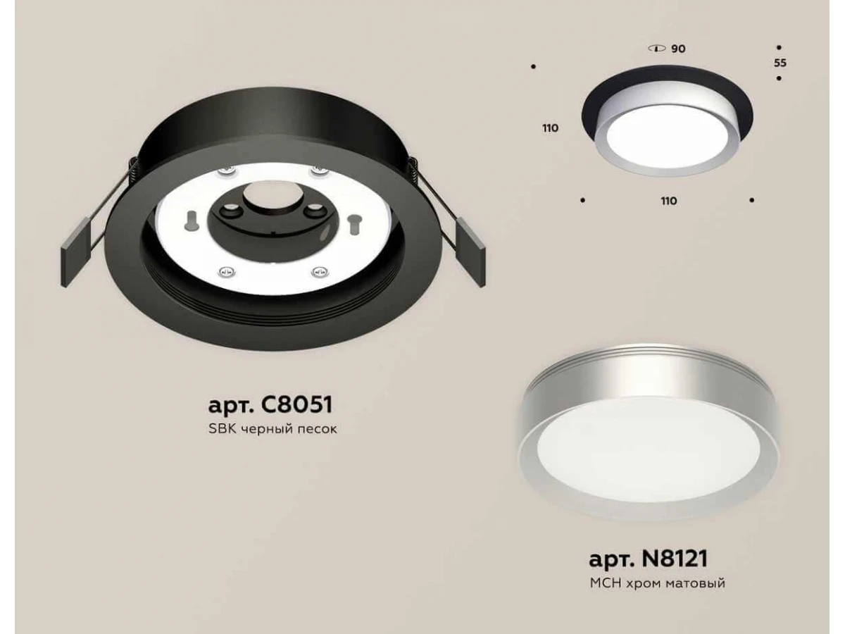 Комплект встраиваемого светильника Ambrella light Techno Spot XC (C8051, N8121) XC8051004