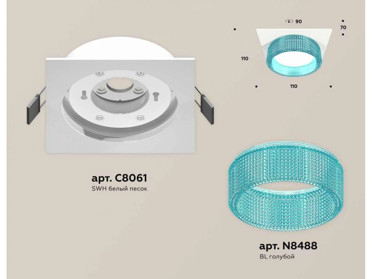 Интересная модель XC8061033 от российской компании Ambrella light относится к коллекции Techno Spot XC и отлично подойдет для установки детской, оформленной в стиле модерн. Производитель Ambrella light рекомендует использовать для устройства светодиодные лампы с цоколем GX53 и мощностью 12 W. Прибор произведен с использованием материалов: пластик и металл и может использоваться для натяжного потолка. Основным цветом товара является голубой и белый. Комплект встраиваемого светильника (C8061, N8488) XC8061033 продается по цене 2428 руб. Торопитесь сделать заказ в интернет-магазине ВоронежСвет.