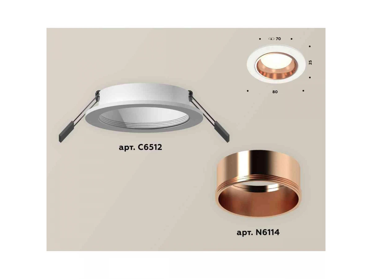 Комплект встраиваемого светильника Ambrella light Techno Spot XC6512005 SWH/PPG белый песок/золото розовое полированное (C6512, N6114)