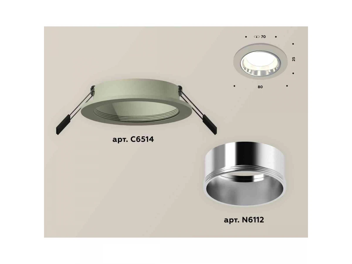 Комплект встраиваемого светильника Ambrella light Techno Spot XC6514003 SGR/PSL серый песок/серебро полированное (C6514, N6112)