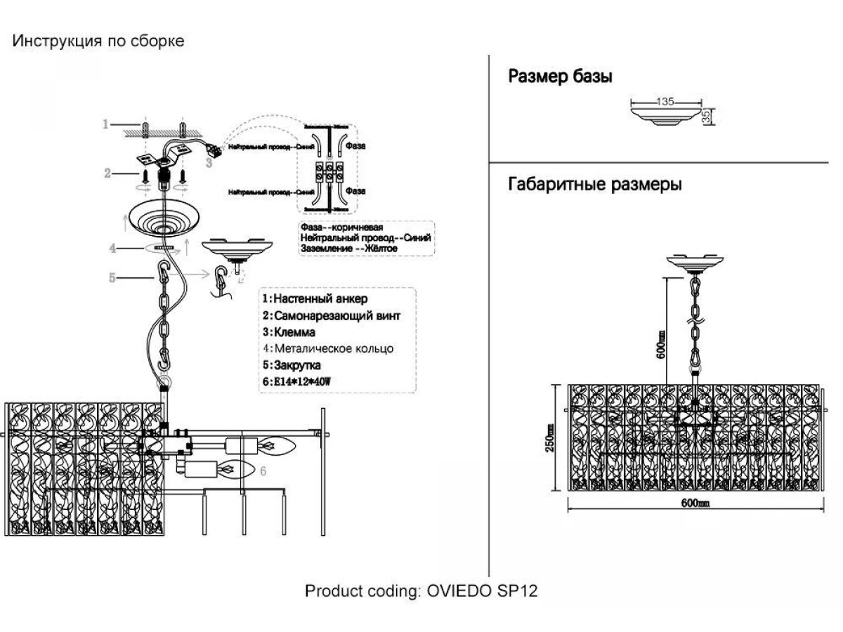 Подвесная люстра Crystal Lux Oviedo SP12