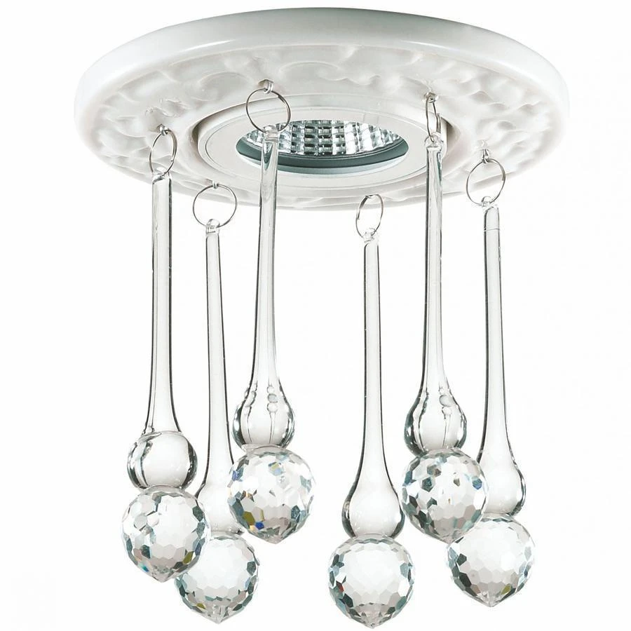 металлическое основание, фарфор, декоратвные подвески из прозрачного хрусталя