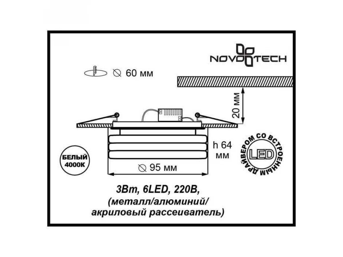 Непревзойденная модель 357154 от венгерской компании Novotech относится к коллекции Spot и отлично подойдет для установки на потолок кухни, оформленной в стиле хай-тек. Осветительный элемент встроен в конструкцию и не требует приобретения дополнительных лампочек. Прибор произведен с использованием материалов: стекло и металл и может использоваться для натяжного потолка. Основным цветом товара является белый, хромовый и прозрачный. Торопитесь сделать заказ в интернет-магазине ВоронежСвет.
