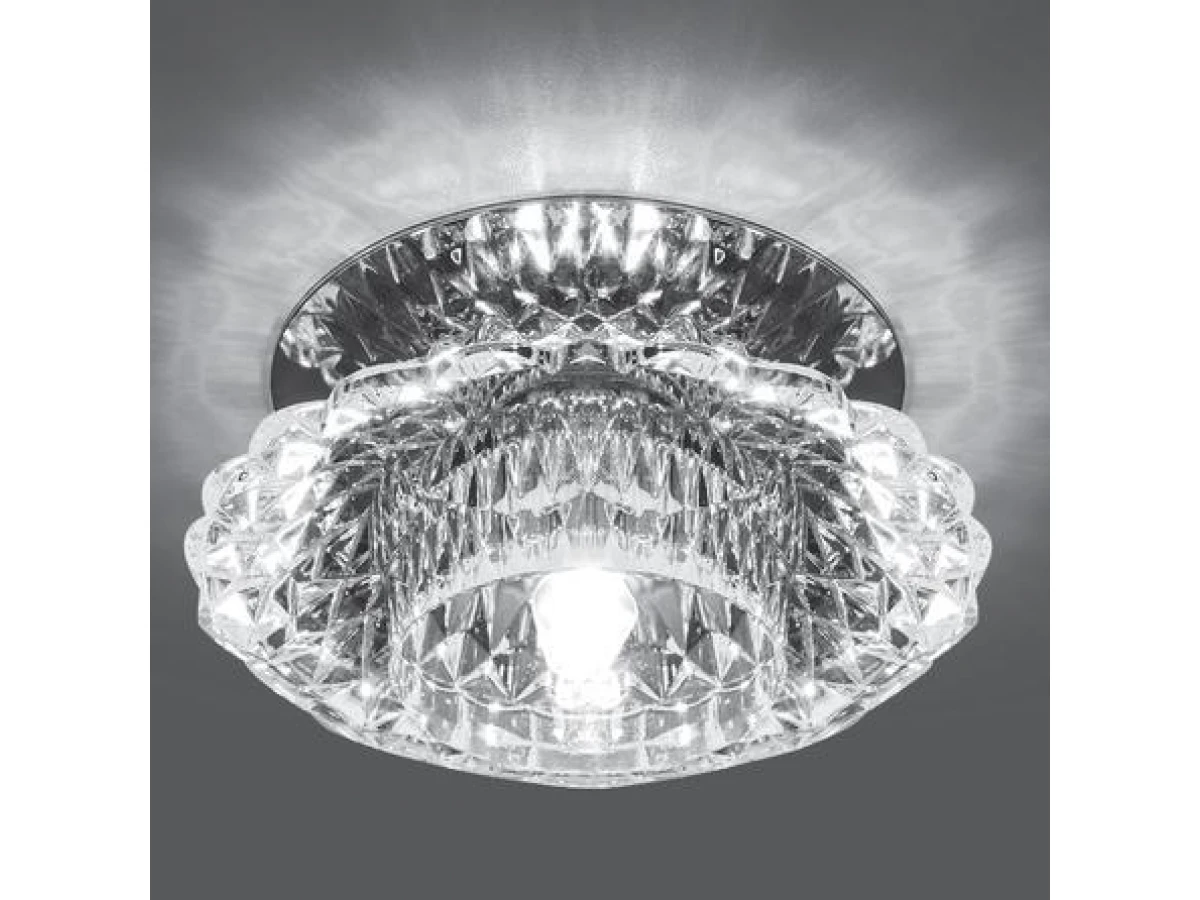 Данная модель входит в состав коллекции CRYSTAL. Точечный светильник имеет высоту 60 мм и диаметр 100 мм. Работает при напряжении 230 V.