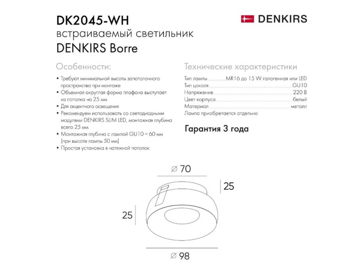 Встраиваемый светильник Denkirs DK2045-WH