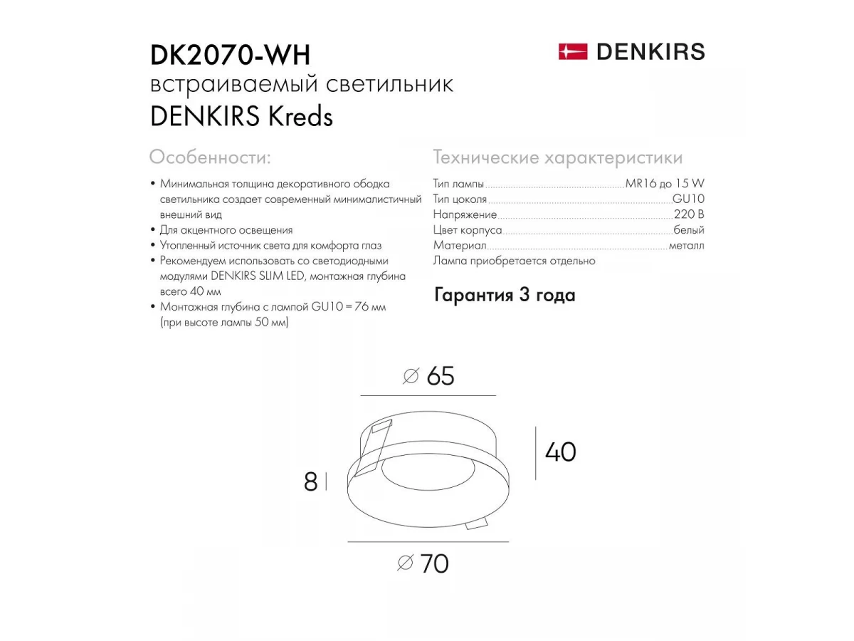 Встраиваемый светильник Denkirs DK2070-WH