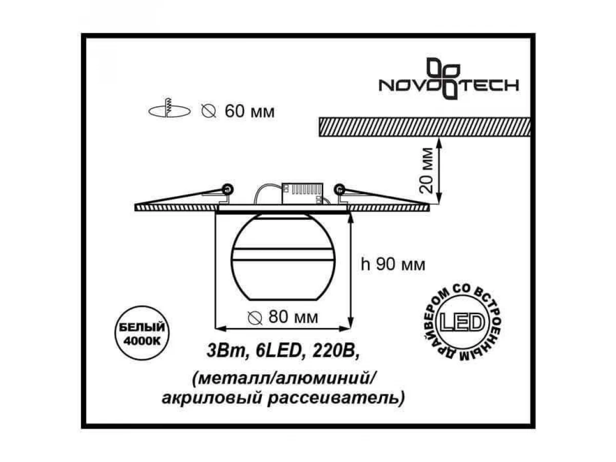 Уникальная модель 357158 от венгерской компании Novotech относится к коллекции Spot и отлично подойдет для установки на потолок кухни, оформленной в стиле хай-тек. Осветительный элемент встроен в конструкцию и не требует приобретения дополнительных лампочек. Прибор произведен с использованием материалов: стекло и металл и может использоваться для натяжного потолка. Основным цветом товара является белый и хромовый. Торопитесь сделать заказ в интернет-магазине ВоронежСвет.
