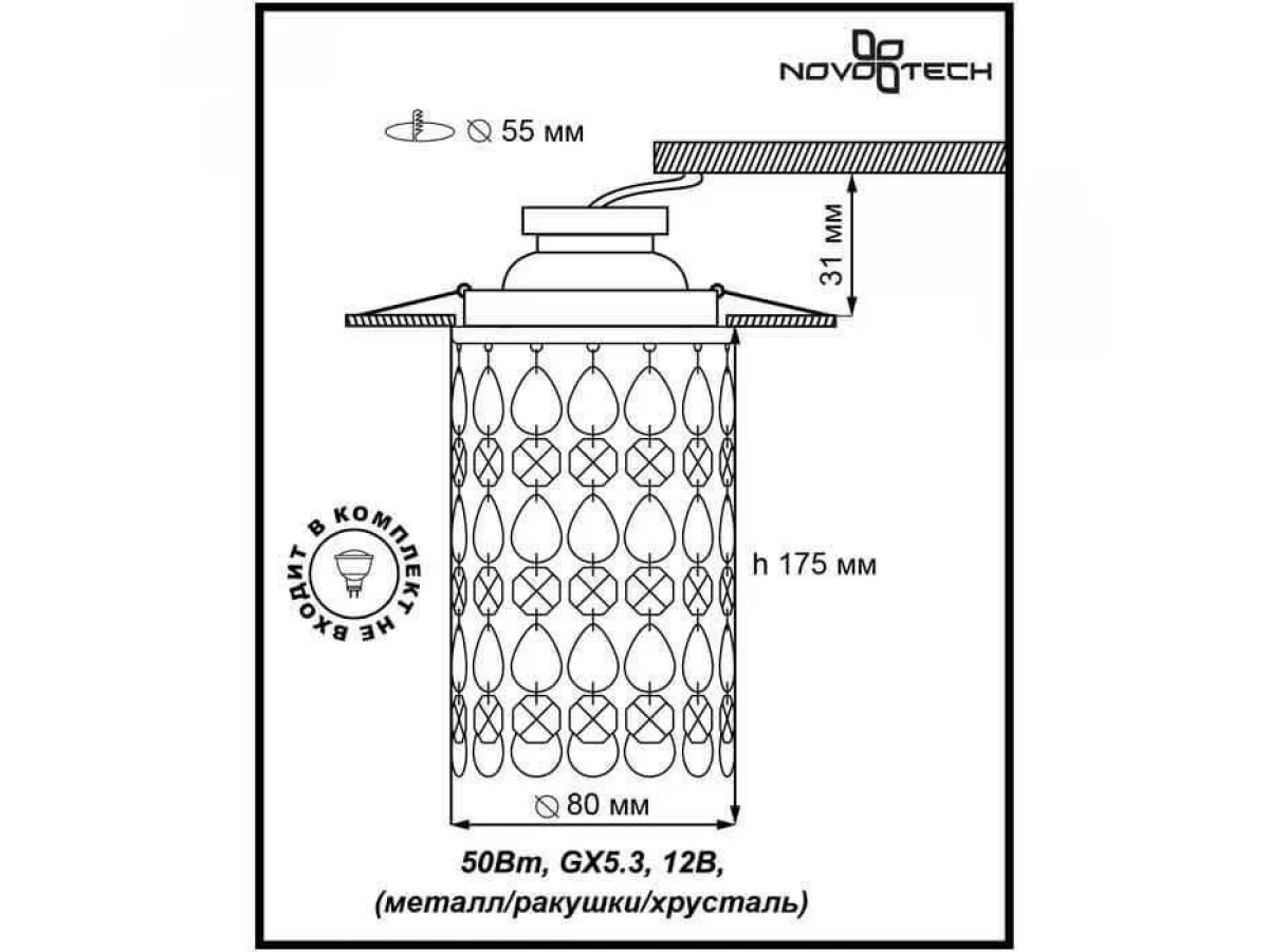 Замечательная модель 370152 от венгерской компании Novotech относится к коллекции Spot и отлично подойдет для установки на потолок в гостиной, оформленной в стиле арт-деко. Встраиваемый светильник Novotech Conch 370152 с круглыми плафонами осветит помещение площадью 2.8 кв. м. Производитель Novotech рекомендует использовать для устройства галогеновые лампы с цоколем GX5.3 и мощностью 50 W. Прибор произведен с использованием материалов: хрусталь и металл и может использоваться для натяжного потолка. Основным цветом товара является белый и хромовый. Торопитесь сделать заказ в интернет-магазине ВоронежСвет.