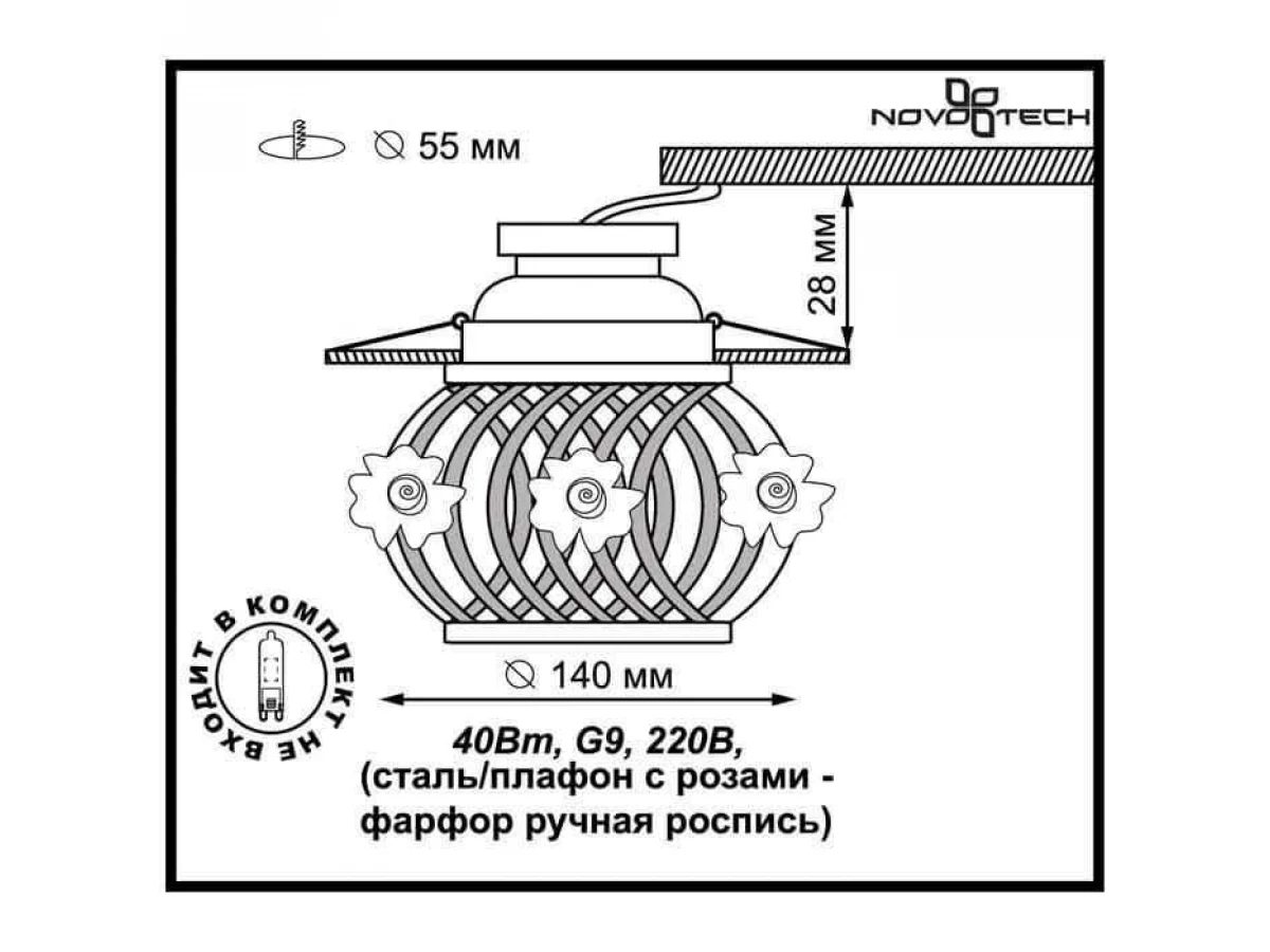 Незаурядная модель 370208 от венгерской компании Novotech относится к коллекции Spot и отлично подойдет для установки на потолок спальни, оформленной в стиле прованс. Встраиваемый светильник Novotech Farfor 370208 с круглыми плафонами осветит помещение площадью 2.2 кв. м. Производитель Novotech рекомендует использовать для устройства галогеновые лампы с цоколем G9 и мощностью 40 W. Прибор произведен с использованием материалов: керамика и металл и может использоваться для натяжного потолка. Основным цветом товара является разноцветный, хромовый и белый. Торопитесь сделать заказ в интернет-магазине ВоронежСвет.