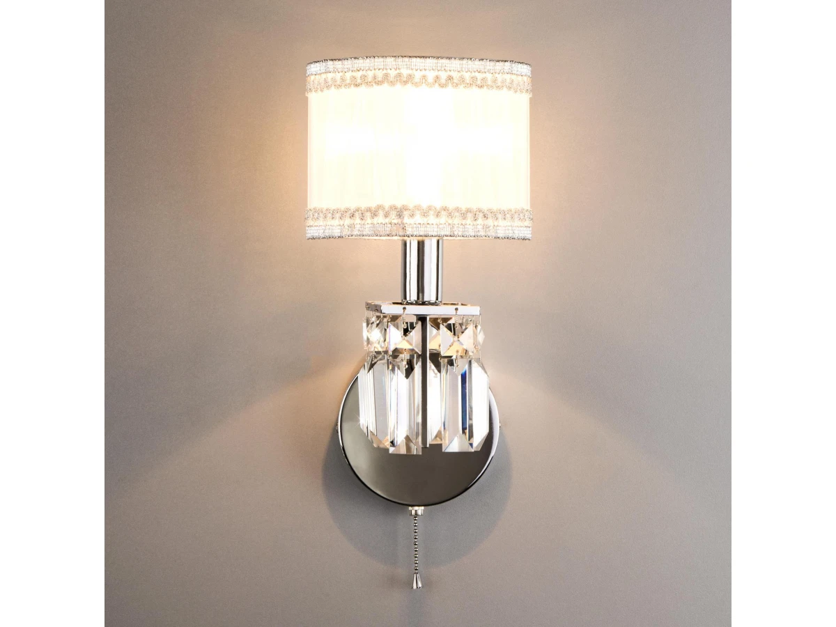 Классическое бра с абажуром Eurosvet 10099/1 хром/прозрачный хрусталь Strotskis