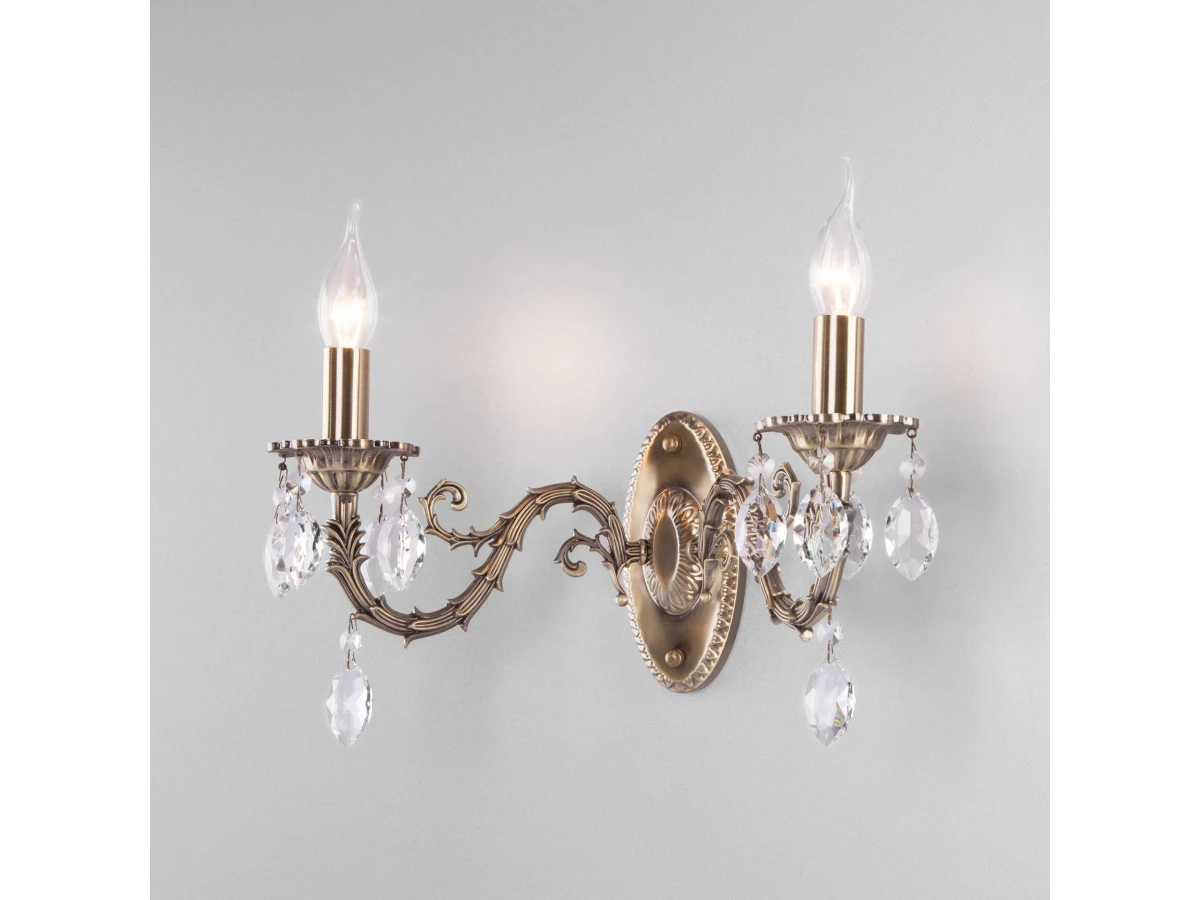 Классическое бра с хрусталем Eurosvet 10102/2 античная бронза/прозрачный хрусталь Strotskis