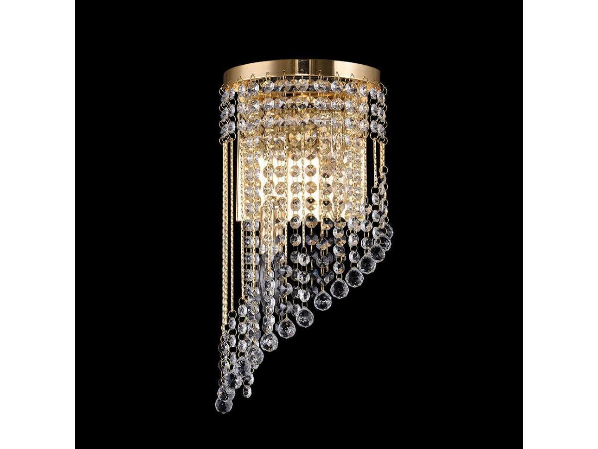 ЭЛЕГИЯ. Легкий звон дождя едва уловим в сияющих нитях хрусталя серии "ЭЛЕГИЯ". Бусы на тонких витых струнах сияющим потоком обрываются вниз, беря свое начало из элегантных металлических оснований. Радужными искрами света наполнится любой интерьер украшенный бра представленной серии.