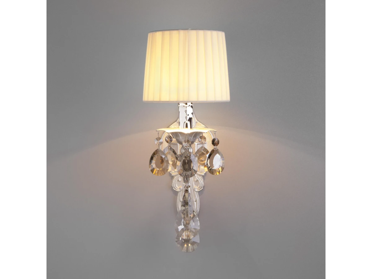 Серебряное бра с абажуром Eurosvet 10098/1 серебро/тонированный хрусталь Strotskis