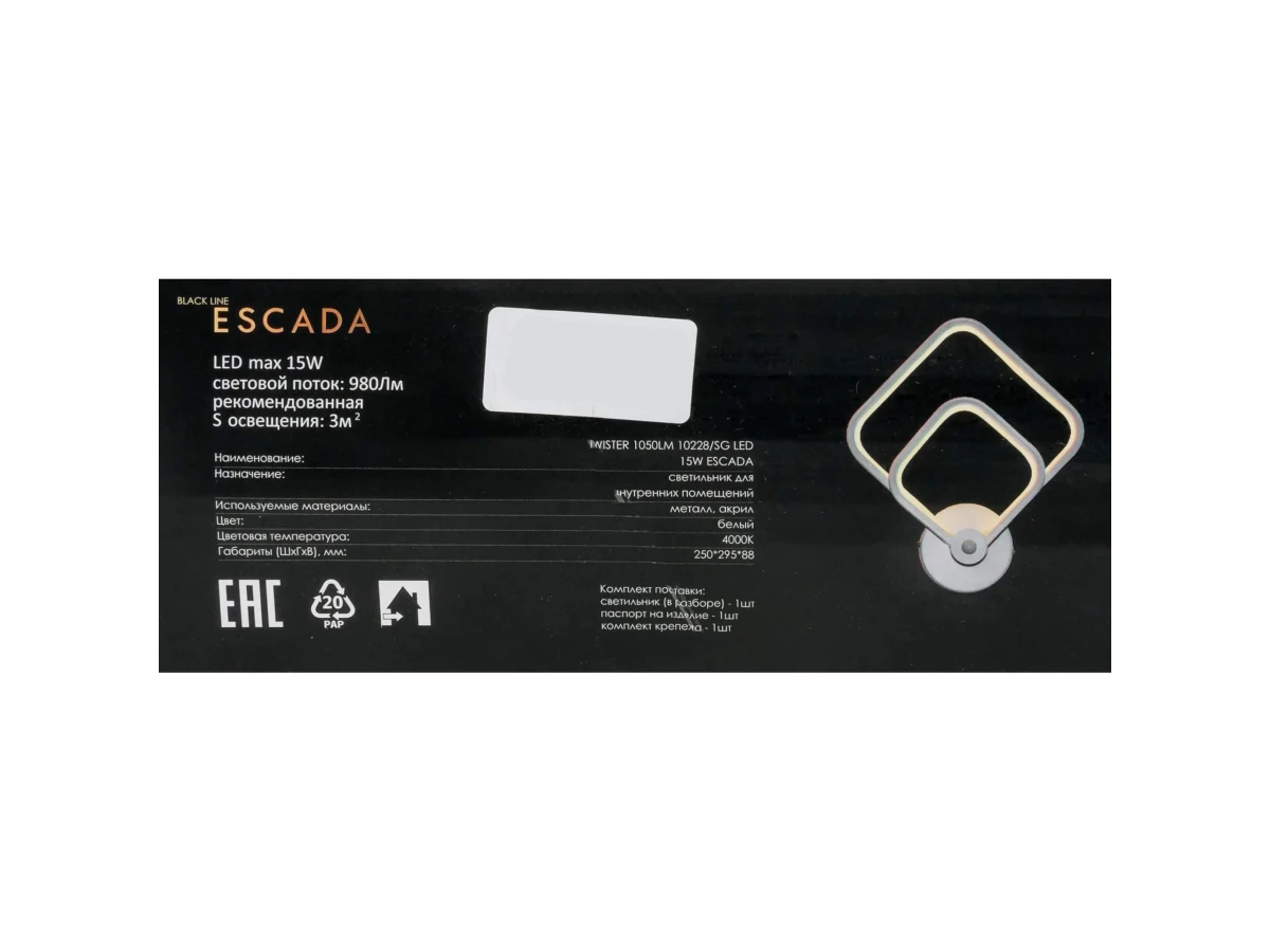 Выдающаяся модель 10228/SG Led от английской компании Escada относится к коллекции Twister и отлично подойдет для установки на стену прихожей, оформленной в современном стиле. Бра Escada Twister 10228/SG Led с ромбическими плафонами осветит помещение площадью 3 кв. м. холодным светом. Осветительный элемент встроен в конструкцию и не требует приобретения дополнительных лампочек. Прибор произведен с использованием материалов: металл и акрил и металл. Основным цветом товара является белый. Торопитесь сделать заказ в интернет-магазине ВоронежСвет.