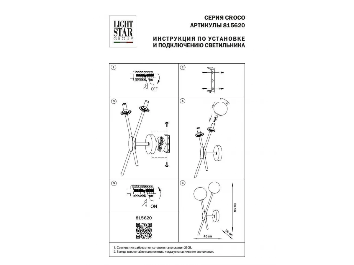 Особенная модель 815620 от итальянской компании Lightstar относится к коллекции Croco и отлично подойдет для установки на стену в гостиной, оформленной в стиле арт-деко. Бра Lightstar Croco 815620 с плафонами в виде шаров осветит помещение площадью 5.3 кв. м. Производитель Lightstar рекомендует использовать для устройства лампы накаливания с цоколем E14 и мощностью 40 W. Прибор произведен с использованием материалов: стекло и металл. Основным цветом товара является белый и черный. Бра 815620 продается по цене 25714 руб. Торопитесь сделать заказ в интернет-магазине ВоронежСвет.