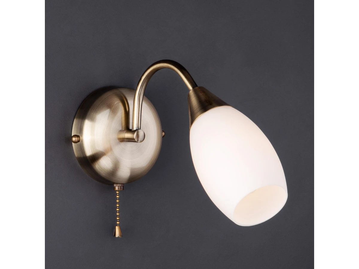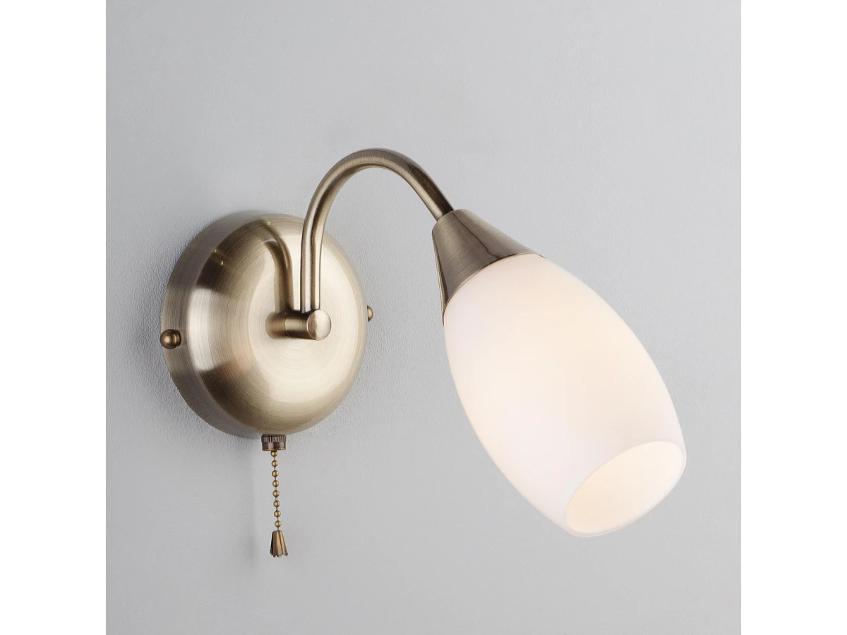 Бра со стеклянным плафоном 30280/1 античная бронза создаст качественное дополнительное освещение и станет эффектным дополнением к основному источнику света. Благодаря белому стеклянному плафону бра создает мягкое равномерное свечение, подходящее для комфортного чтения книг в вечернее время. В качестве источника света используются сменные лампы типа "Свеча" или "Шар" с цоколем E14. Патрон рассчитан на максимальную мощность ламп накаливания 40Вт. Корпус светильника выполнен из высококачественного и прочного металла с надежным покрытием. Бра легко устанавливается при помощи крепежной планки, которая обеспечивает надежную фиксацию светильника на стене. В интернет-магазине Минимир вы можете купить настенный светильник с доставкой по Москве, Санкт-Петербургу и России.