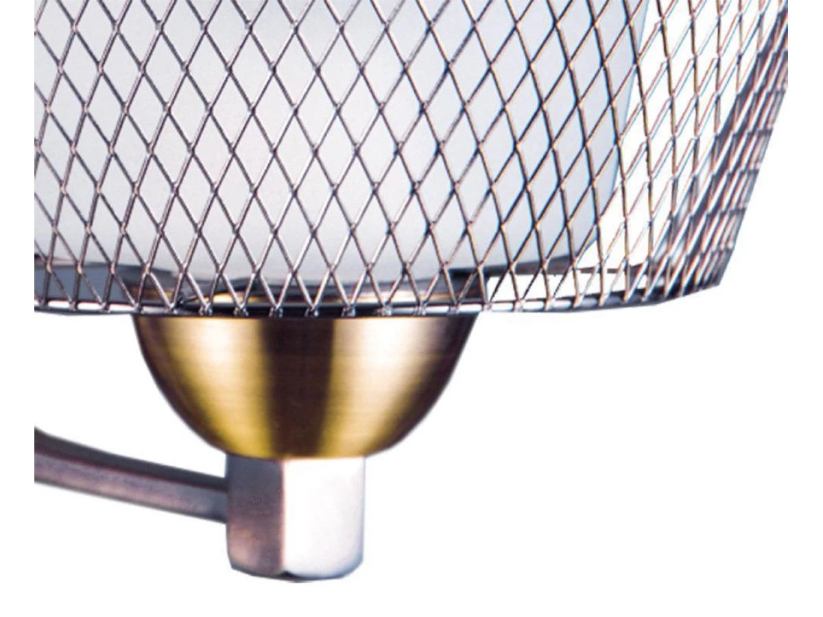 ДЖОЙС. Цвет античной бронзы, растекаясь по плавным волнам плоской фурнитуры, плотно окрасил основание оригинальной модницы "ДЖОЙС". Из тончайшей сетки сложились ниши, в которых расположены матовые плафоны. Стальным украшением, наполняющим светом интерьер, станет тандем из люстры и бра этой серии.