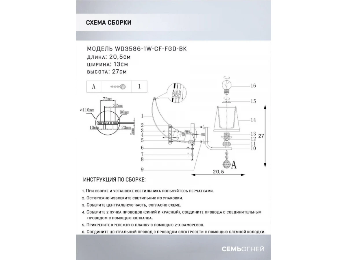 Бра Seven Fires Aprim WD3586/1W-CF-FGD-BK