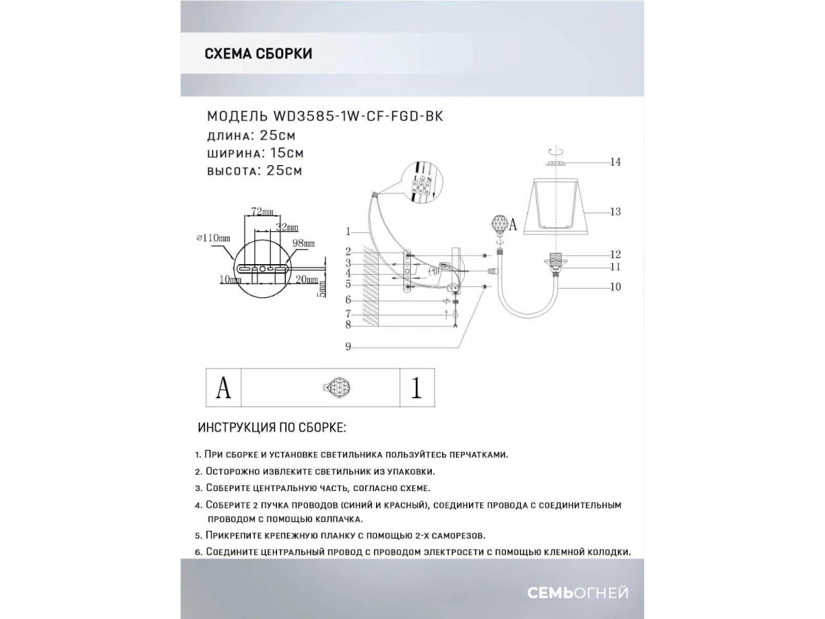 Бра Seven Fires Gilliana WD3585/1W-CF-FGD-BK