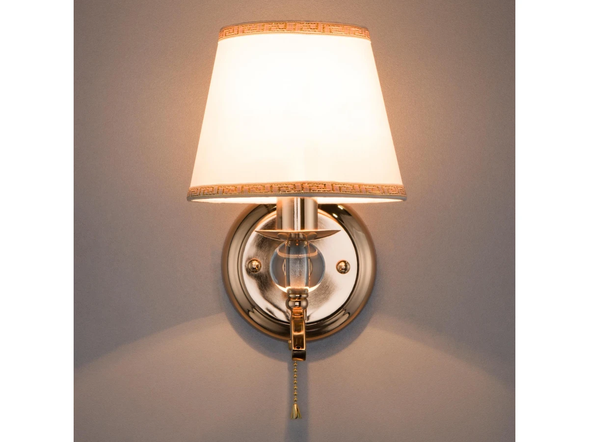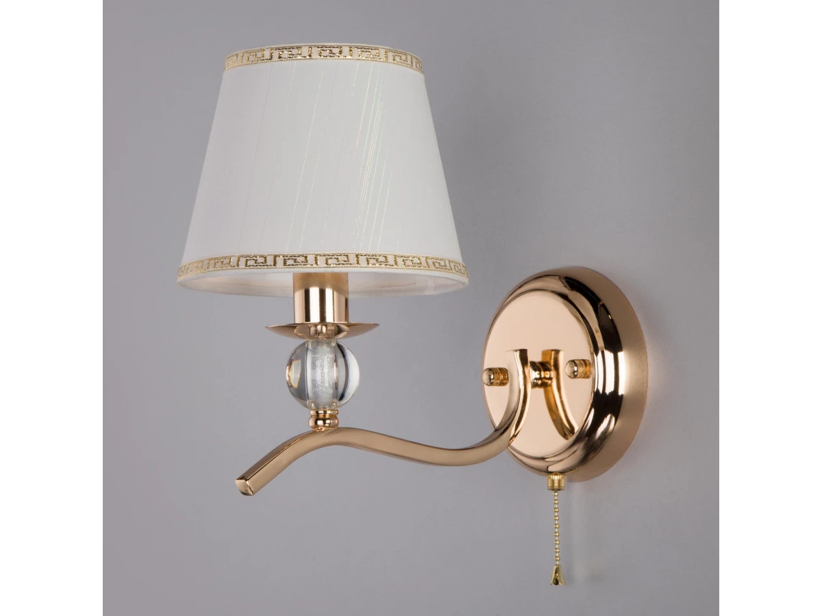 Настенный светильник в классическом стиле 60097/1 золото создаст качественное дополнительное освещение и станет эффектным дополнением к основному источнику света. Благодаря белому тканевому абажуру бра создает мягкое равномерное свечение, подходящее для комфортного чтения книг в вечернее время. В качестве источника света используются сменные лампы типа "Свеча" или "Шар" с цоколем E14. Патрон рассчитан на максимальную мощность ламп накаливания 40 Вт. Корпус светильника выполнен из высококачественного и прочного металла с надежным покрытием. Бра легко устанавливается при помощи крепежной планки, которая обеспечивает надежную фиксацию светильника на стене. В интернет-магазине Минимир вы можете купить классическое бра с доставкой по Москве, Санкт-Петербургу и России.