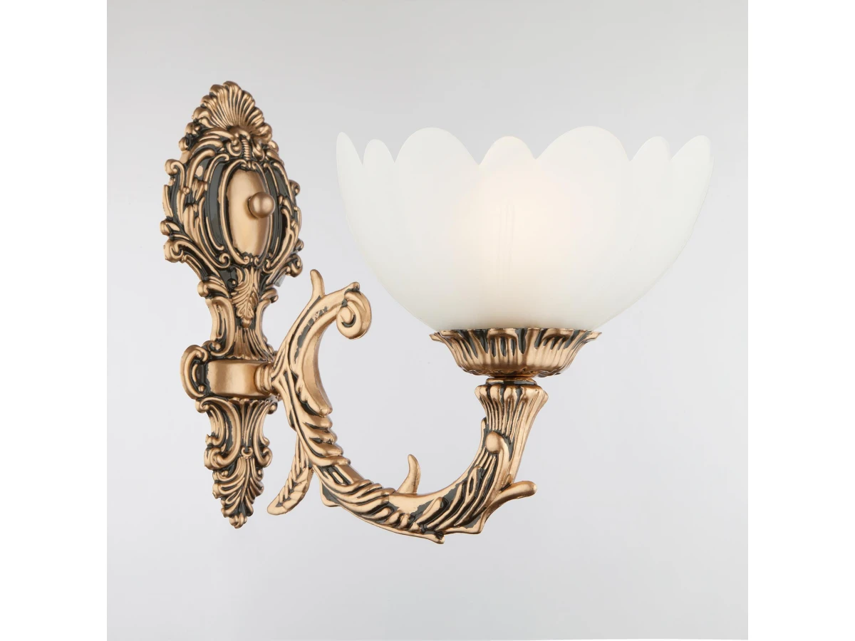 Классическое бра с плафоном из стекла 6051/1 античная бронза создаст качественное дополнительное освещение и станет эффектным дополнением к основному источнику света. Благодаря белому стеклянному плафону бра создает мягкое равномерное свечение, подходящее для комфортного чтения книг в вечернее время. В качестве источника света используются сменные лампы типа "Свеча" или "Шар" с цоколем E27. Патрон рассчитан на максимальную мощность ламп накаливания 60Вт. Корпус светильника выполнен из высококачественного и прочного металла с надежным покрытием. Бра легко устанавливается при помощи крепежной планки, которая обеспечивает надежную фиксацию светильника на стене. В интернет-магазине Минимир вы можете купить настенный светильник с доставкой по Москве, Санкт-Петербургу и России.