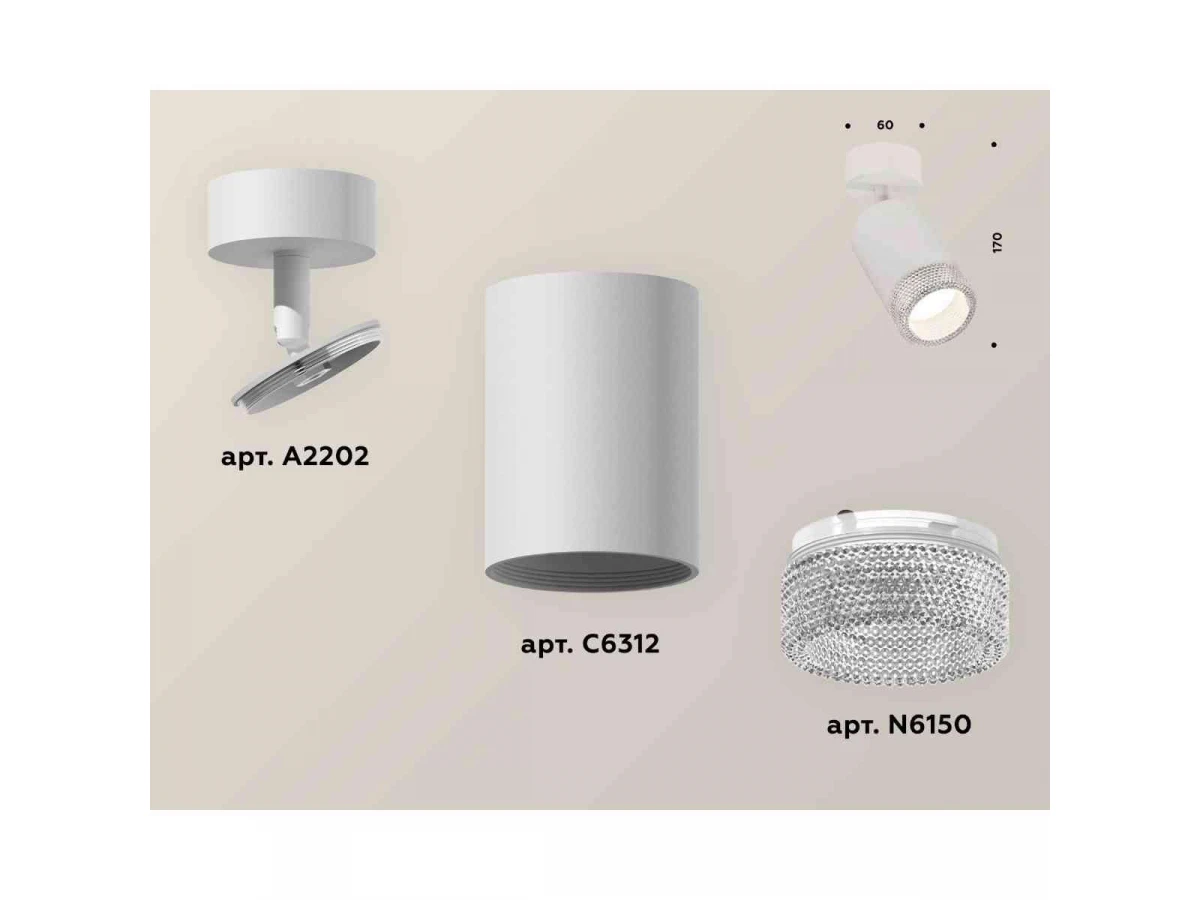 Комплект накладного светильника Ambrella light Techno Spot XM6312001 SWH/CL белый песок/прозрачный (A2202, C6312, N6150)