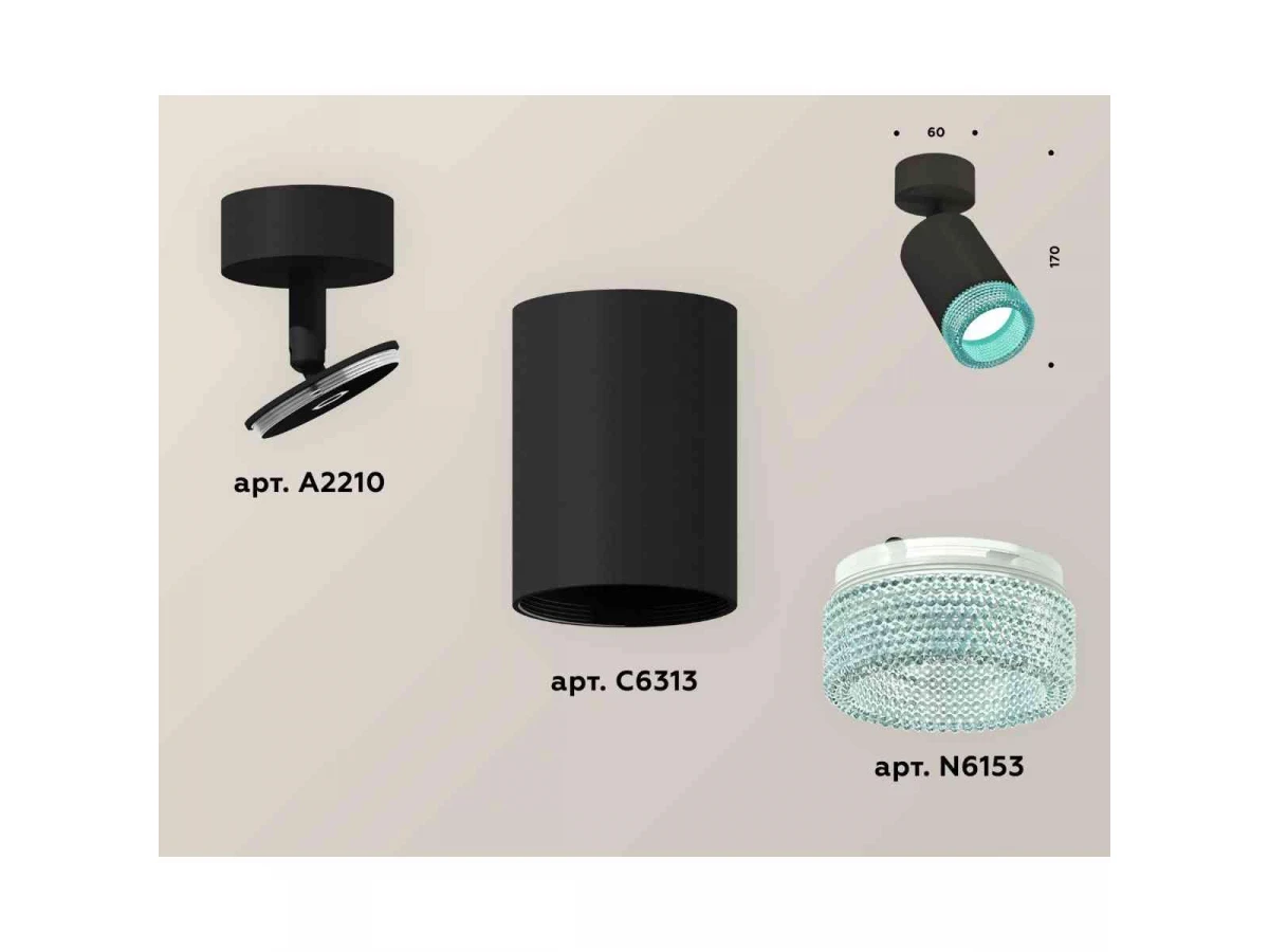Комплект накладного светильника Ambrella light Techno Spot XM6313004 SBK/BL черный песок/голубой (A2210, C6313, N6153)